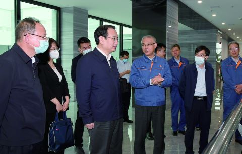 5月31日,全國人大常委會委員、社會建設委員會副主任委員,中華全國總工會副主席、書記處書記、黨組成員譚天星率調研組到太鋼調研。 王旭宏 攝