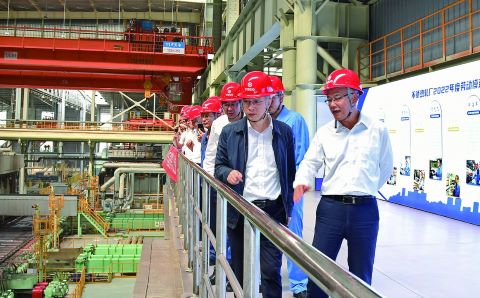 圖為參觀4300mm中厚板生產(chǎn)線智能化升級(jí)改造項(xiàng)目。 王旭宏 攝