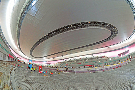 10月15日,在被譽為“冰絲帶”的北京冬奧會標志性場館——國家速滑館內,工程建設者們正在地面鋪設太鋼不銹鋼螺紋鋼筋。國家速滑館建設對所供鋼材品質要求非常高,太鋼不銹鋼管、不銹鋼螺紋鋼筋、L型C型不銹鋼板等三類產品在眾多同類品種中脫穎而出,參與助力場館建設,為奧運建筑貢獻太鋼力量。(王旭宏攝)