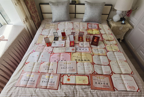 謝東升獲得的各項榮譽。(新華社記者馬志異 攝)