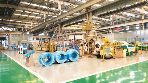5月6日,中國寶武太鋼不銹鋼精密帶鋼有限公司生產車間內,清洗機組正在對“手撕鋼”材料脫脂處理。 本報通訊員攝