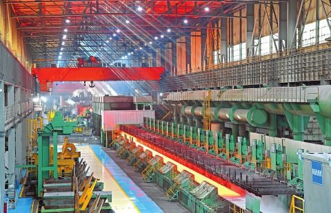 12月20日,中國寶武太鋼集團熱連軋2250毫米生產線在軋制超厚規格熱軋卷板。日前,太鋼首次軋制成功31毫米超厚規格高強建筑用熱軋卷板,達到行業同規格軋制厚度先進水平。(王旭宏攝)