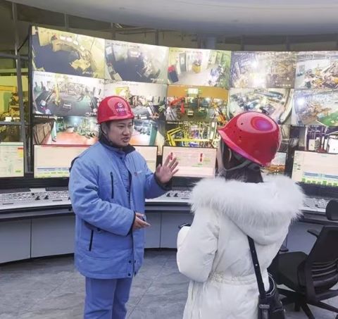 圖為廖席正向《中國冶金報》記者介紹2025年新春期間的生產安排(薛志軍 攝)